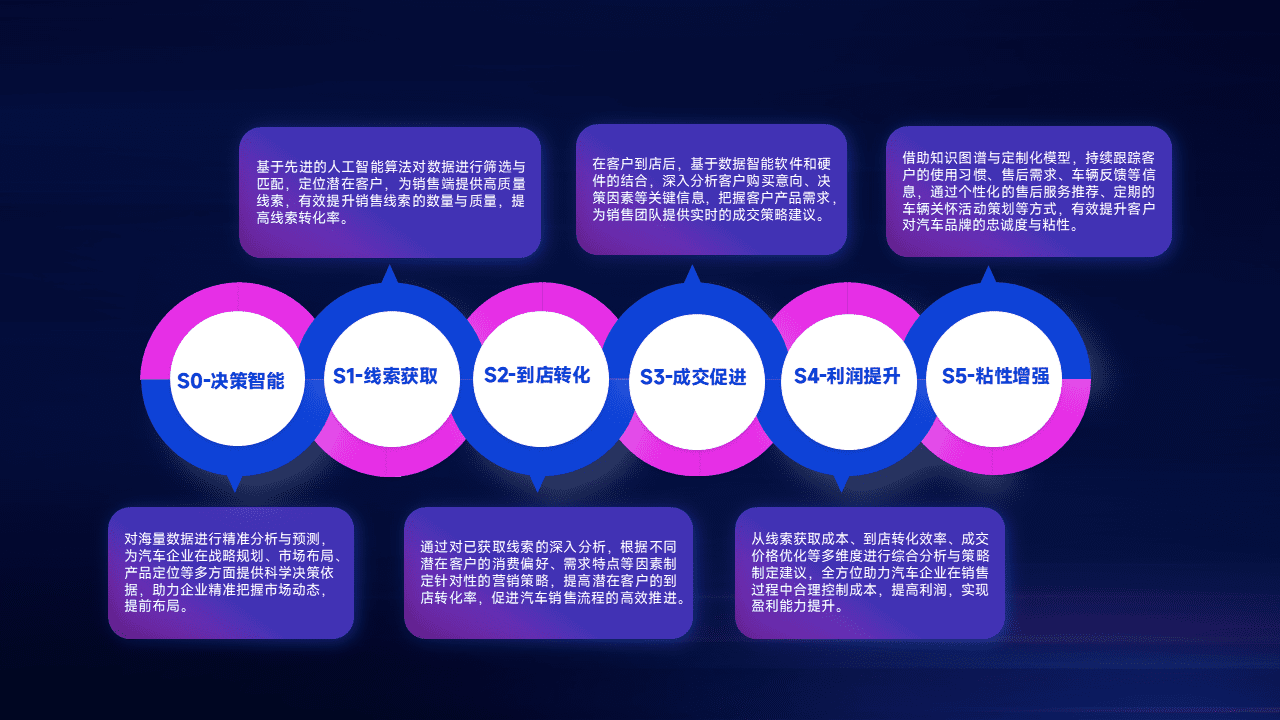 通过拓宽潜在客户来源、、、优化线索分配并提高到店转化率,,以增强销售效率。。。同时,,利用线索数据不断优化分析模型,,有效提升转化率,,,扩大营销影响力。。